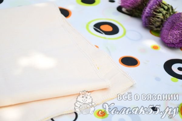 Обрабатываем изделие розовой пряжей вот таким узором: *3 столбика с накидом, 3 воздушных петли (вязать от * до конца ряда).