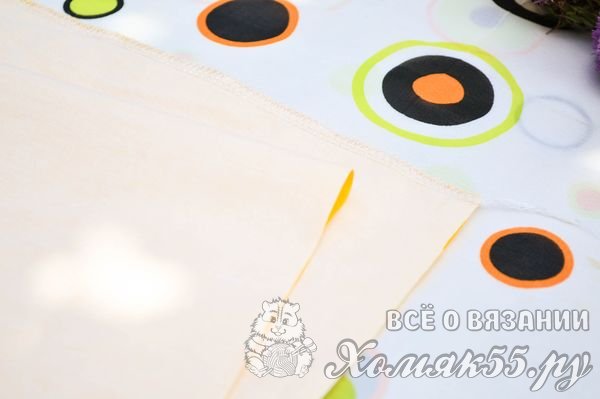 Теперь можно шить юбку. Для этого берем ткань 80х28 см. Складываем лоскут ткани пополам и сшиваем боковой шов с помощью оверлока. Он сразу и обработает срез.