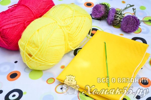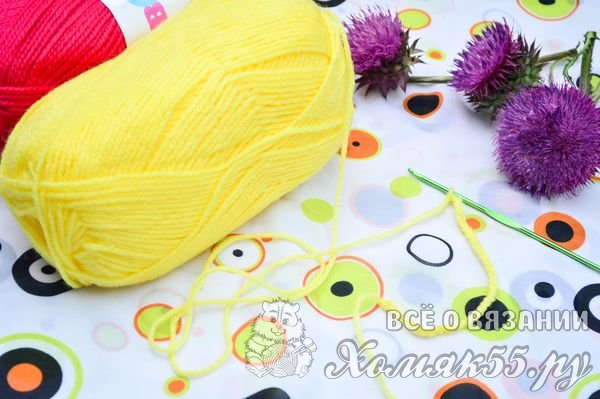 - 1/3 мотка желтой пряжи (300 м/100г)