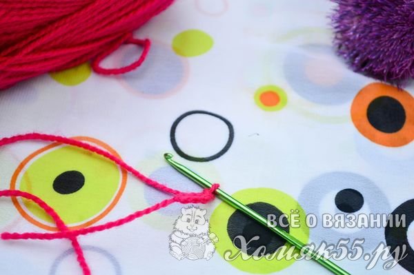 Набираем цепочку из 112 воздушных петель. Соединяем цепочку в кольцо.