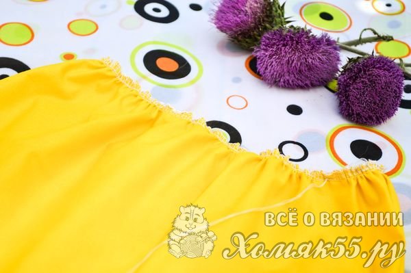 Пришиваем юбку к вязаной кокетке.