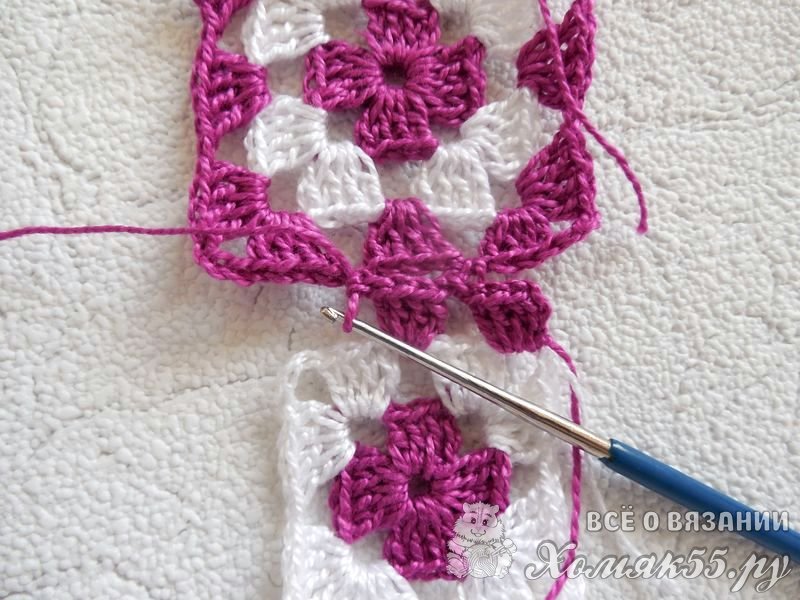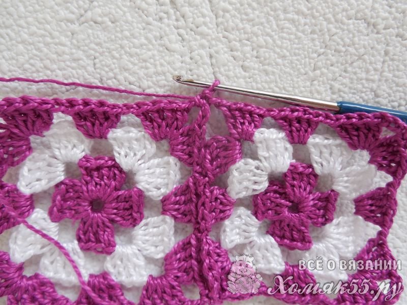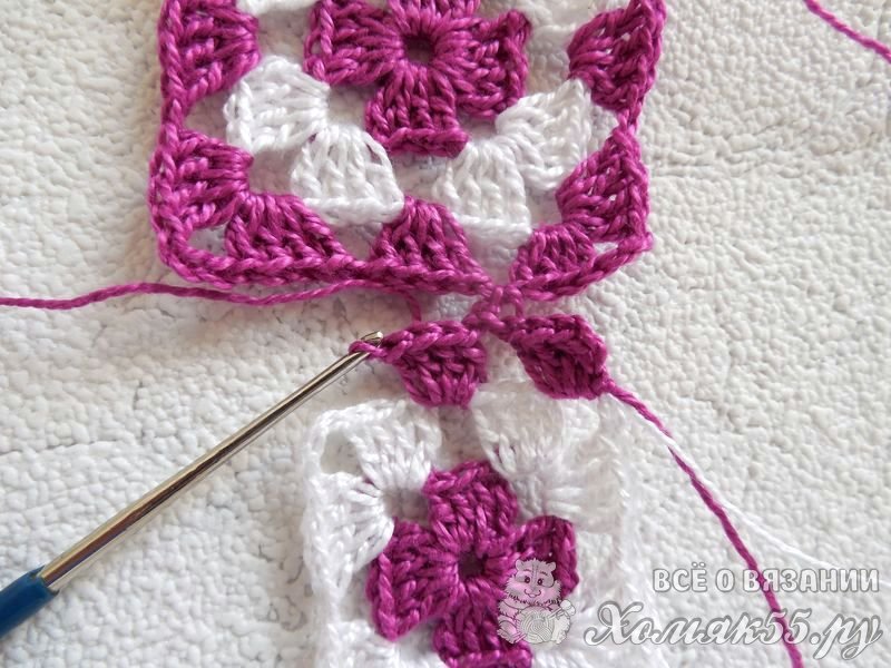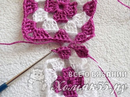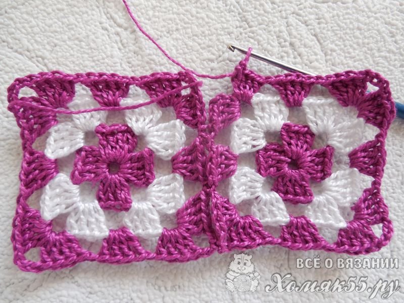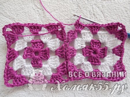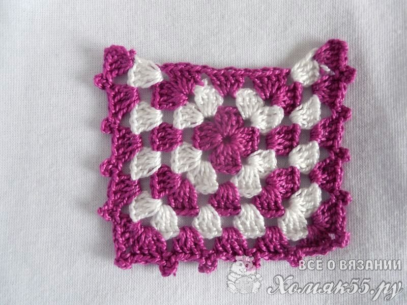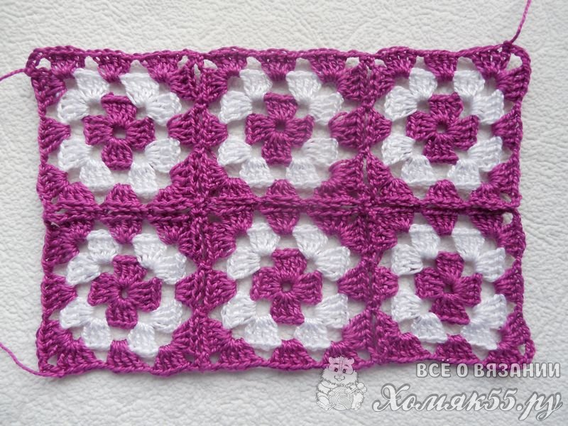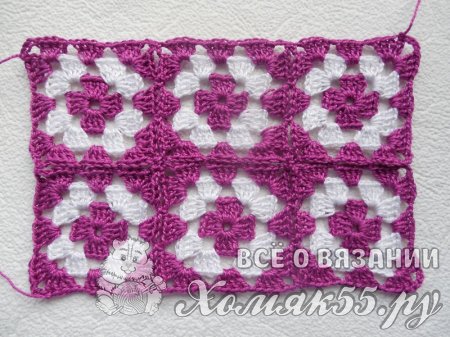 Свяжите и соедините между собой шесть квадратных мотивов.