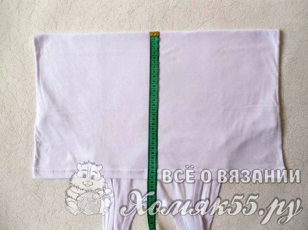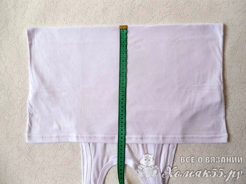 Приготовьте майку/футболку (р-р примерно 56-58, ширина изделия по низу должна быть не меньше 50 см) или отрез ткани с обработанным низом. Лучше всего если это будет трикотаж. Отмерьте и отрежьте от низа полосу высотой 30 см.