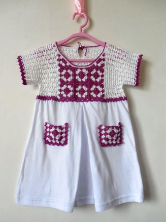 Мы уже почти дождались лета, предлагаю оперативно обновить к летнему сезону гардероб Вашей маленькой модницы. Сделать платьице, используя уже готовую взрослую футболку и свои навыки вязания крючком, можно очень быстро и просто.