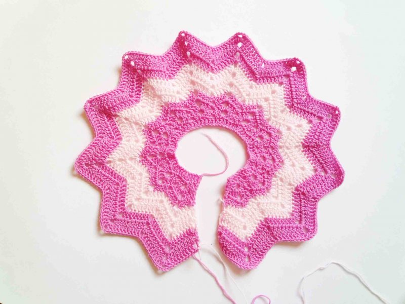 Каждые 3 ряда мы будем менять нить. Вязание повторяется до необходимого размера лифа платья.