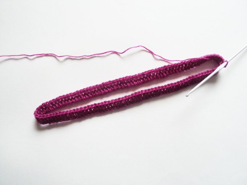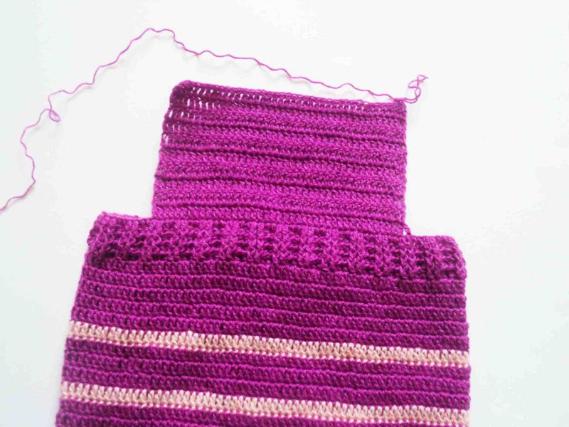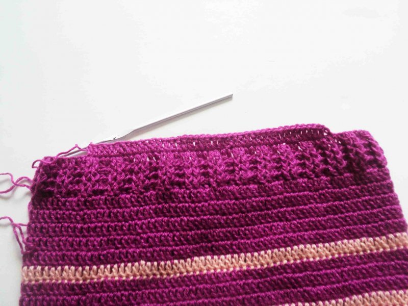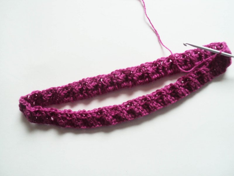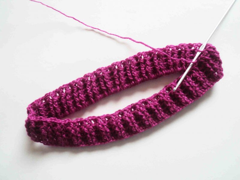 Нитку прикрепляем и вяжем ссн, оставив так же 8 рельефных столбика, но теперь слева.