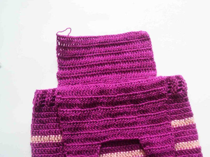 Теперь свяжем заднюю часть комбинезона. Для начала нужно связать центральное полотно. Оно вяжется так же, как и передняя. Количество рядов должно быть таким же и ширина тоже.