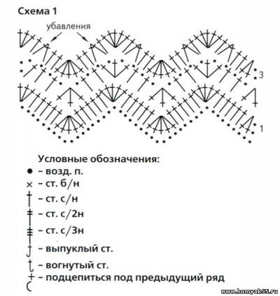 Внимание! Перед началом вязания выполните выкройку платья в полную величину. Основное полотно вяжите афганским вязанием по схеме 1.