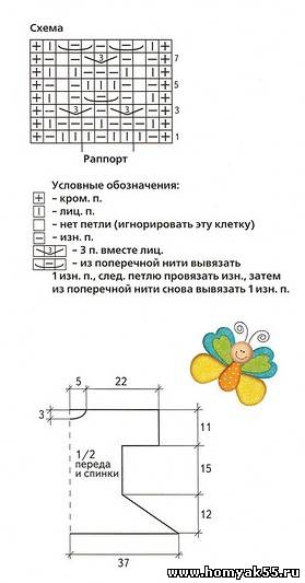 Ажурный узор - 30 петель х 44 ряда = 10 х 10 см.