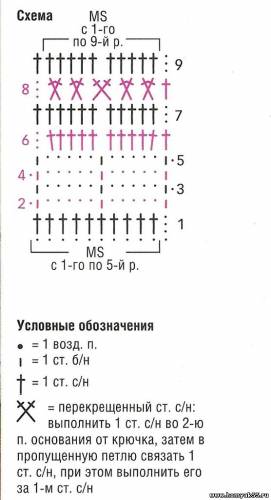 петлю основания. Круг. ряды начинать с 3 начальных ВП вместо 1-го ССН и заканчивать 1 СС в последнюю начальную ВП.