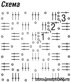 Плед состоит из 6 квадратных мотивов. Фантазийной пряжей свяжите цепочку из 6 ВП, замкните её в кольцо и на его основе вяжите мотив по схеме, чередуя пряжу так: 2 ряда фантазийной, 2 ряда терракотовой, 2 ряда жёлтой, 2 ряда пряжей цвета липы, 2 ряда чёрной, 3 ряда фантазийной, 3 ряда терракотовой, 3 ряда жёлтой, 3 ряда пряжей цвета липы и 3 ряда чёрной. Свяжите еще 5 таких мотивов. Мотивы соедините иглой в прямоугольник 2 на 3. Готовый прямоугольник обвяжите по периметру, как мотив по схеме, чередуя пряжу так: 3 ряда фантазийной, 3 ряда терракотовой, 3 ряда жёлтой, 3 ряда пряжей цвета липы и 3 ряда чёрной. Обвяжите плед по кругу черной пряжей 1-м рядом СБН. Слегка отпарьте плед.