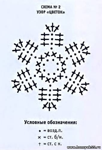 Узор "цветок": вязать но описанию с 1-го по 3-й ряды.