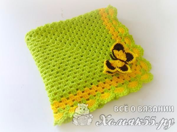 Многие молодые мамы вяжут для своих маленьких детей. И мы свяжем яркий сочный плед крючком, который подойдет для выписки, а также просто в кроватку ребенку.