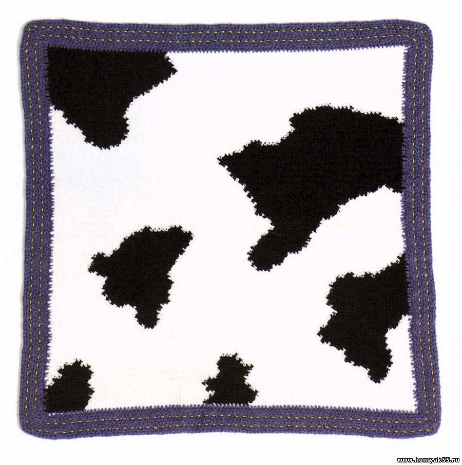 Размер: 81 х 88 см (без окантовки) Вам потребкется: 340 г пряжи из акрила и нейлона; 265 м в 170 г; цвет - белый (А), 170 г пряжи из акрила и нейлона; 265 м в 170 г; цвета: черный (В) и синий (С), 100 г пряжи из мерсеризованного хлопка; 320 м в 100 г; цвет - золотой (D), крючок 5 мм (можете взять другой крючок для сохранения необходимой плотности вязания), игла с тупым концом.