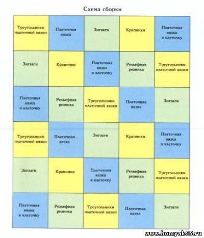 Примечание. Сторона каждого квадрата около 15 см. Цвет и узор для каждого квадрата указаны на схеме.