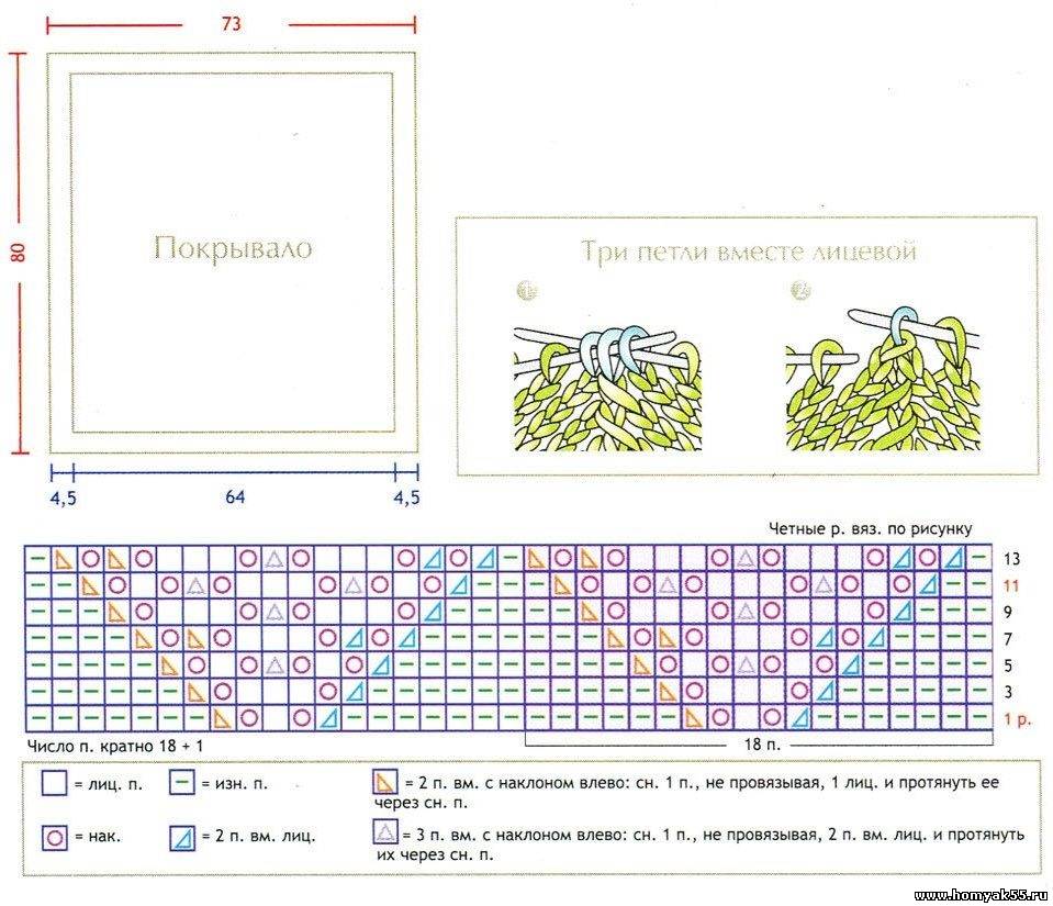 Узоры: изнаночная платочная вязка, фантазийный узор по схеме