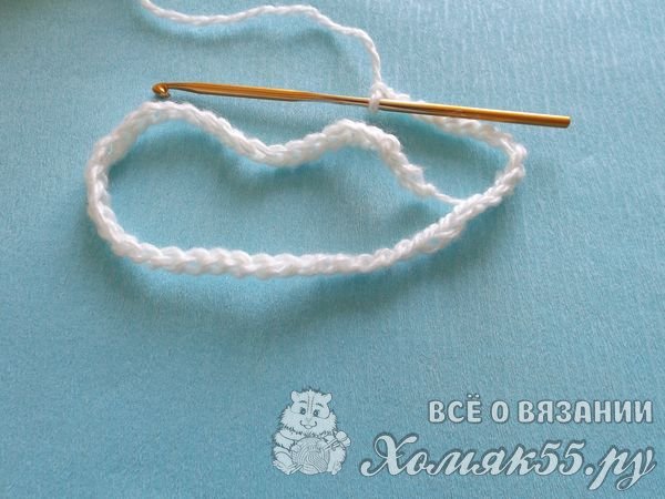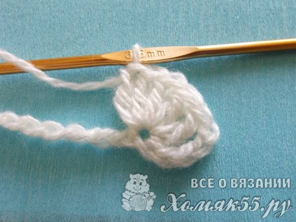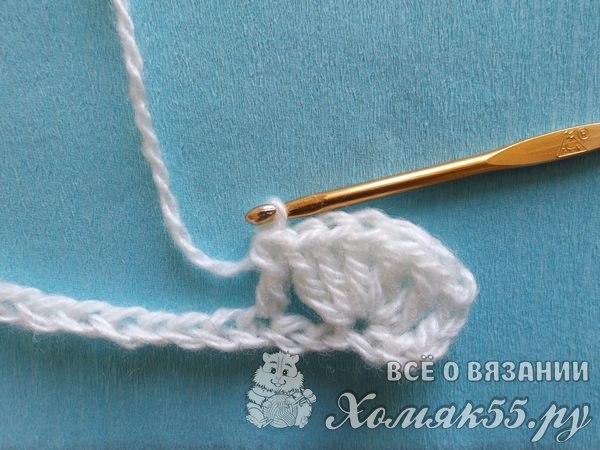 В шестую петлю слева от крючка провязываем 5 столбиков с накидом (ССН).