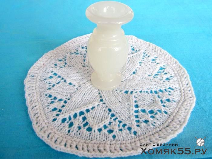 Для украшения практически любого интерьера подходит вязаная круглая салфетка. Ее можно создать всего за несколько часов. Как правило, ажурные круглые салфетки вяжут крючком, но данная модель выполнена на чулочных спицах.