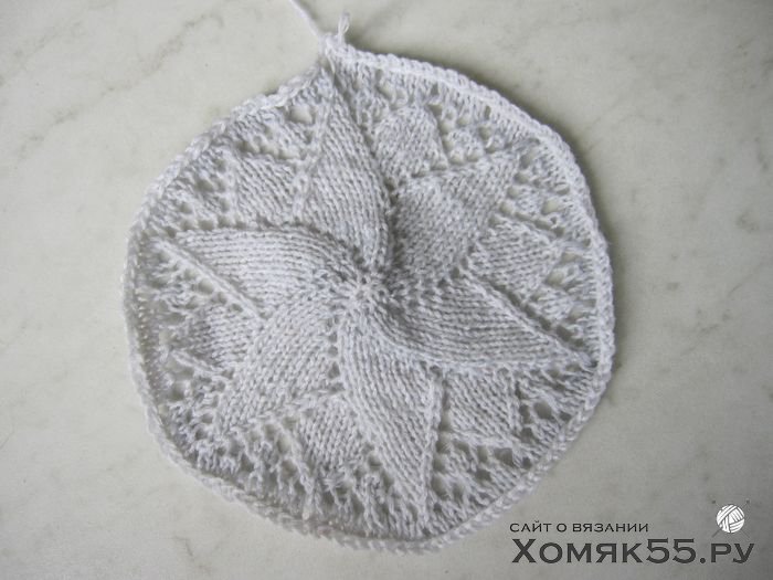 После 17-го ряда лепестки на салфетке начинают сужаться, а между ними появляются 6 новых.