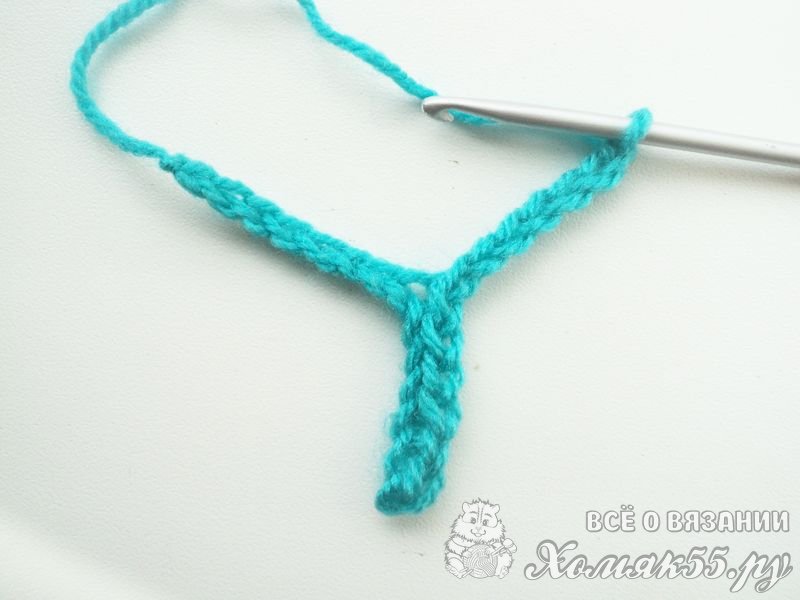 Начнем вязать закладку снизу вверх. Набираем 13 ВП. Далее свяжем 6 соединительных столбиков (СС). И снова наберем 7 ВП.