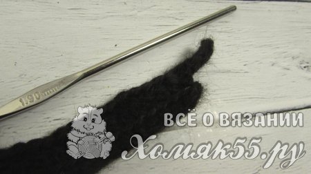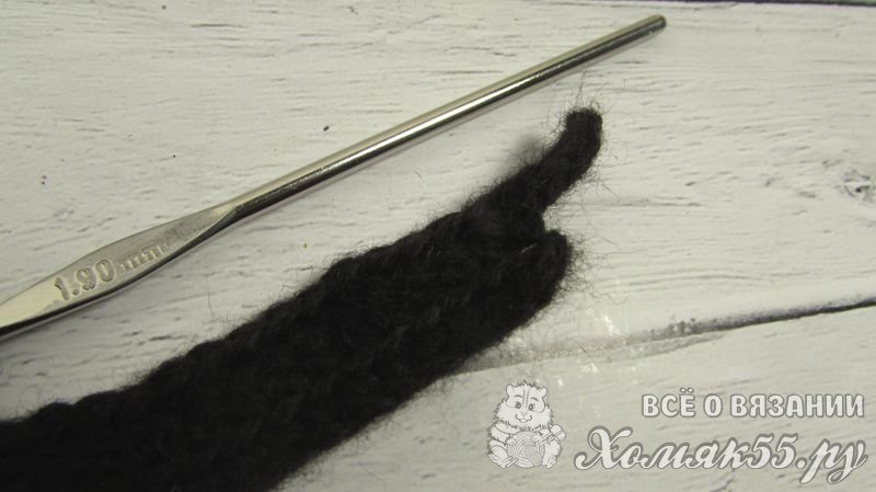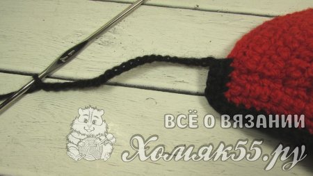 Как только весь прямой ряд, а также 5-6 петель с круглой стороны брюшка будут провязаны, в самом конце ряда вяжем цепочку из 15 воздушных петель.