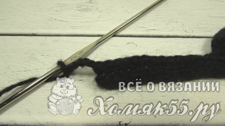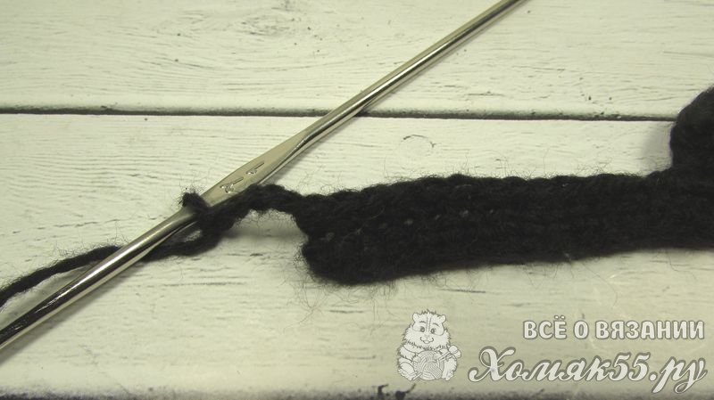 Снова поворачиваем вязание и вяжем столбики без накида до конца ряда, опять прикрепляя последнюю петлю к основе.