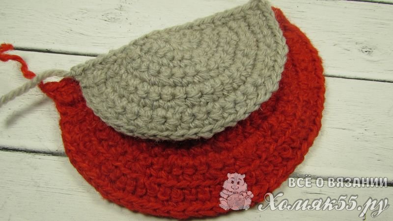 Брюшко снегиря готово. Крылышко снегиря вяжем точно таким же образом, только в этом случае меняем пряжу на светло-серую. К тому же, размер крылышка должен быть примерно в два раза меньше размера брюшка.