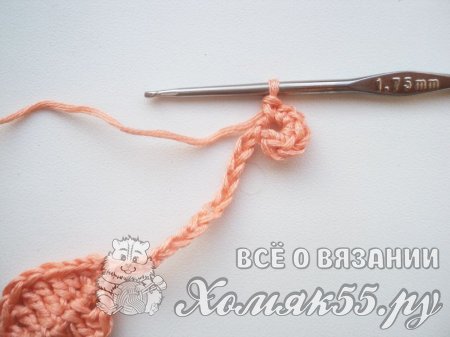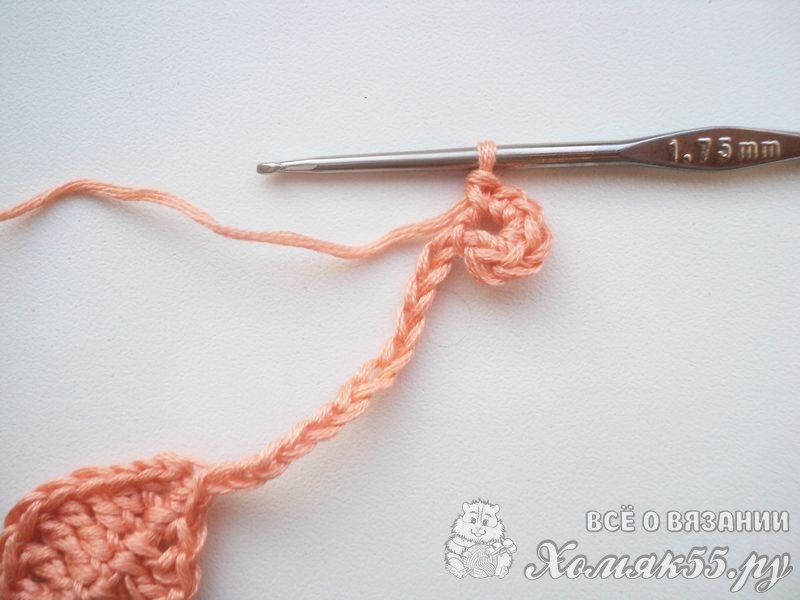 Наберем воздушную цепочку. Всего необходимо набрать 11 петелек. И сделаем петлю подъема.