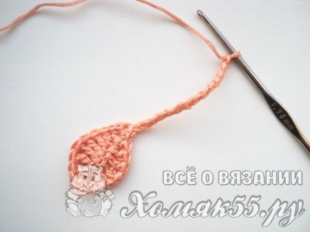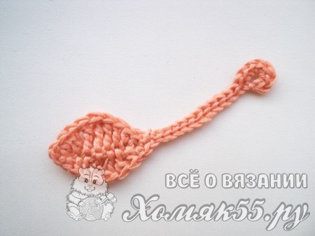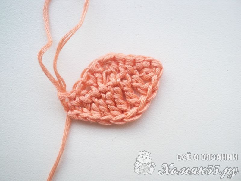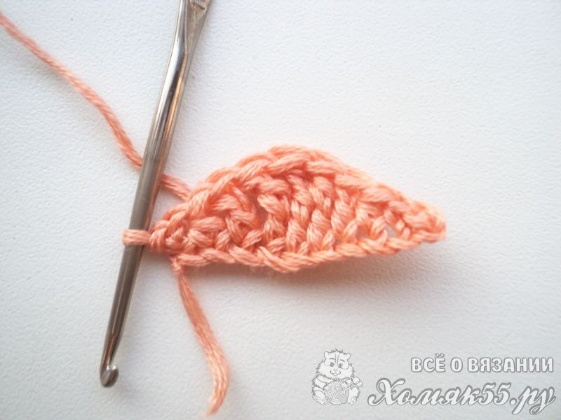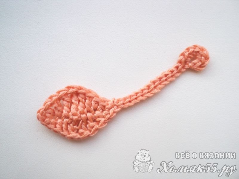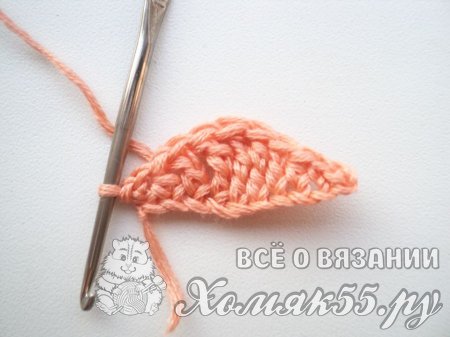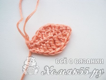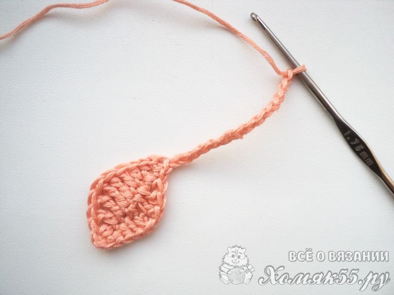 И теперь просто вяжем по второй стороне так же. У нас получится деталь, напоминающая листочек.