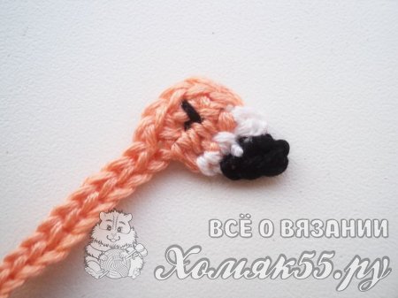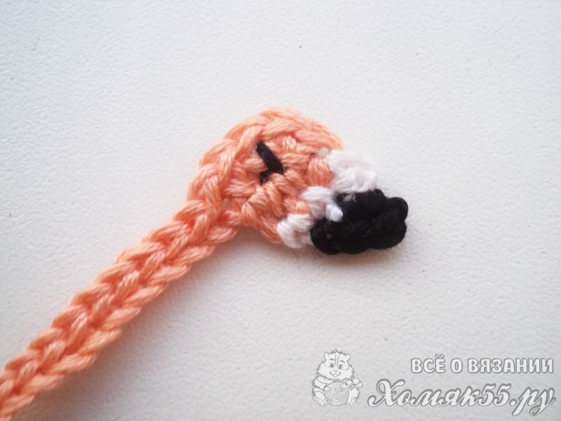 И вяжем дальше 6 столбиков без накида в одну петлю. Так получается голова фламинго.