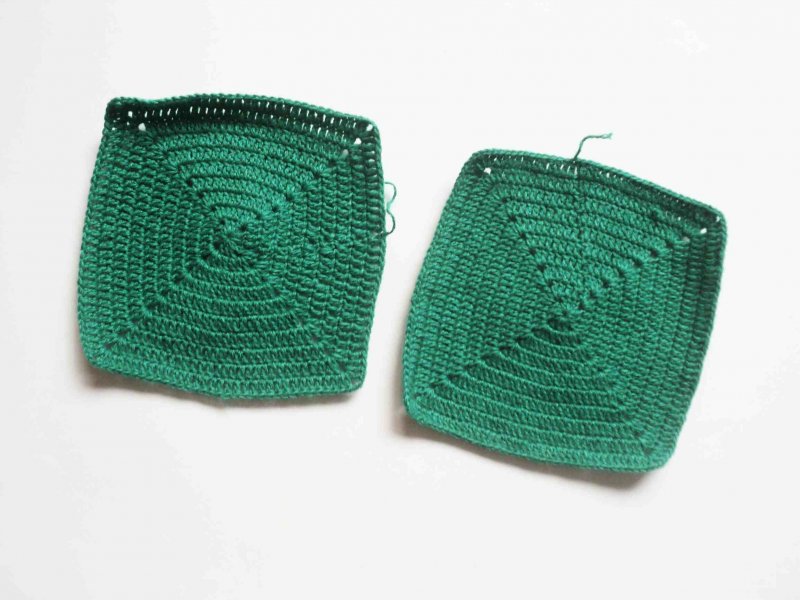 И все последующие ряды провязываются точно так же. Их количество зависит от желаемого размера прихватки. Связать нужно 2 одинаковых квадрата, чтобы прихватка была толще.