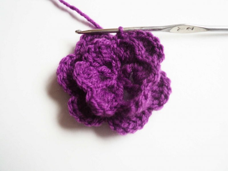 И сделаем еще 1 слой. Вяжем так же, как в предыдущем ряду, только между 2 и 3 ссн лепестков второго слоя. И еще вяжем арки, выполняя дополнительно по 1 ссн между лепестков.