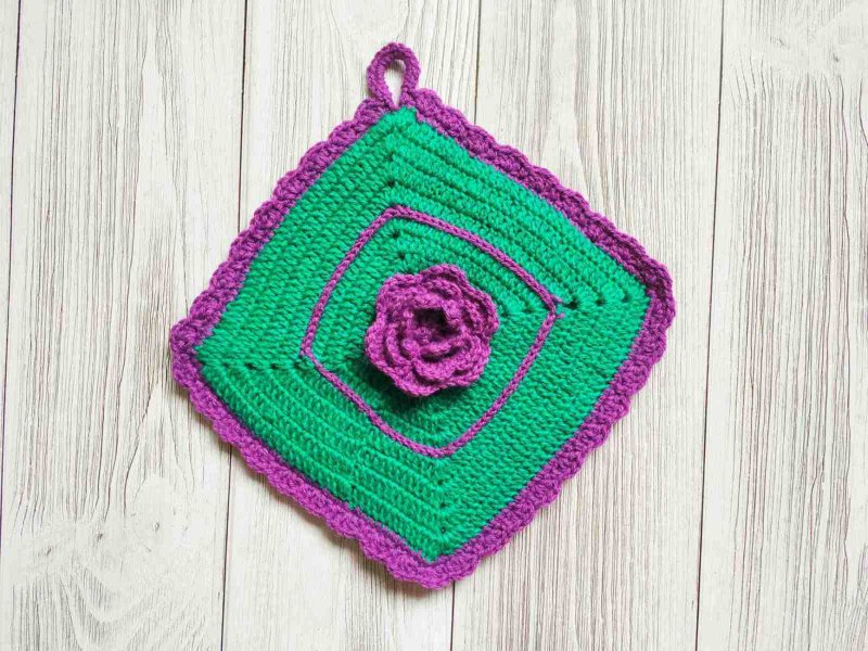 Теперь свяжем цветочек, который послужит декором прихватки.