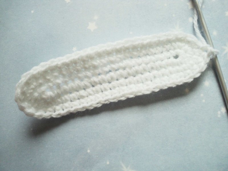 Теперь провяжем место, где будут проходить шнурки. Вяжем по 1 ссн в каждый сбн, а над 1 вп вяжем 1 вп.