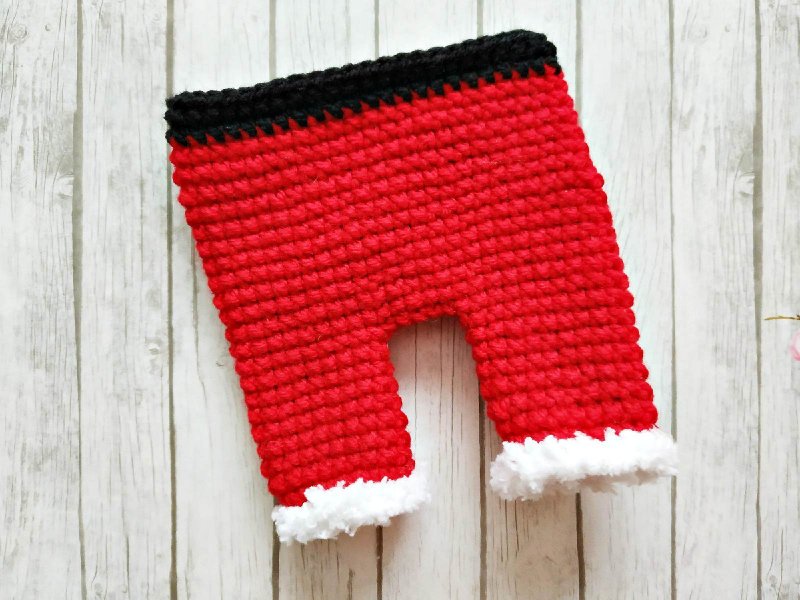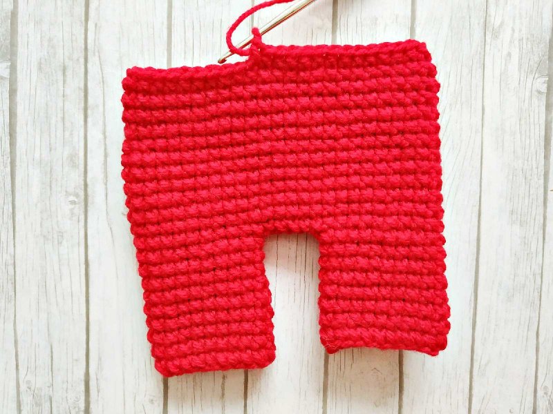 Вязать штанишки Санты будем со штанин. Сначала мы свяжем одну, затем другую по такой же схеме, а потом соединим их и плавно перейдем к вязанию верха.