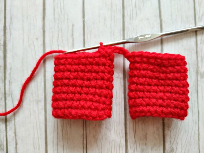 Вяжем 4 петли, а затем выполним 1 сбн в любую петельку второй детали.