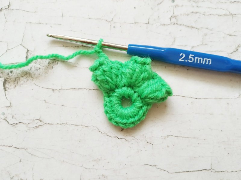 Под новую цепочку вяжем 3 ст\с\нак, 2 вп и еще 3 ст\с\нак.