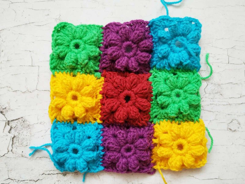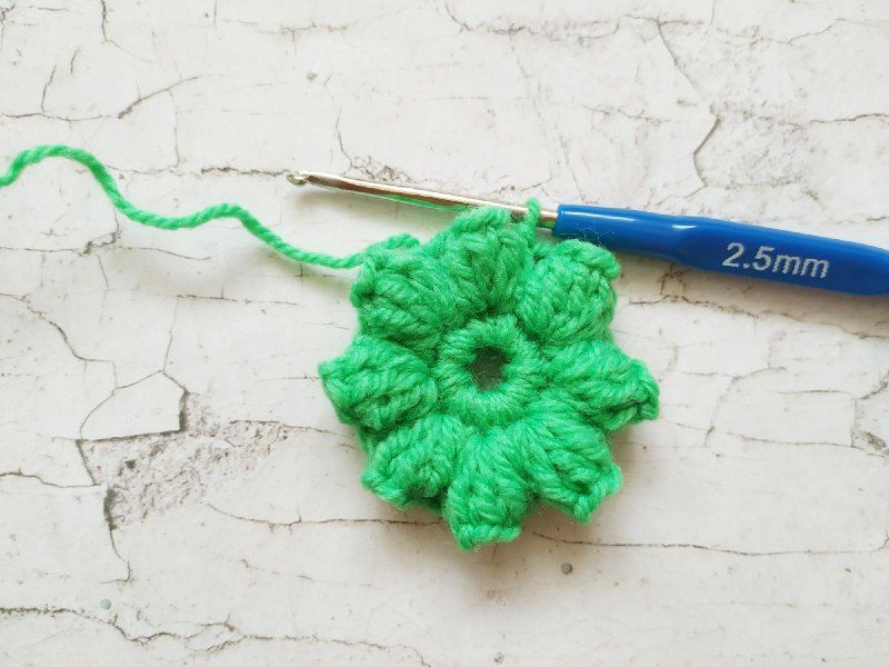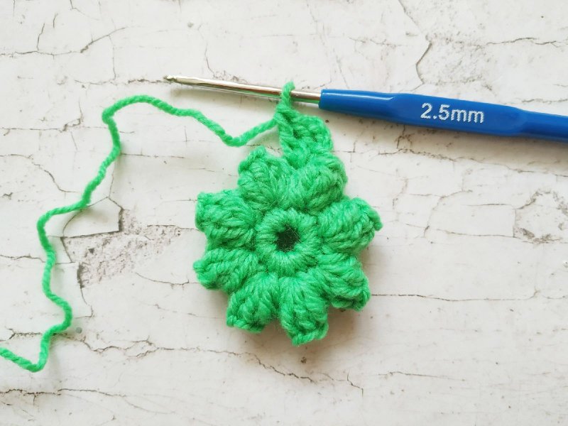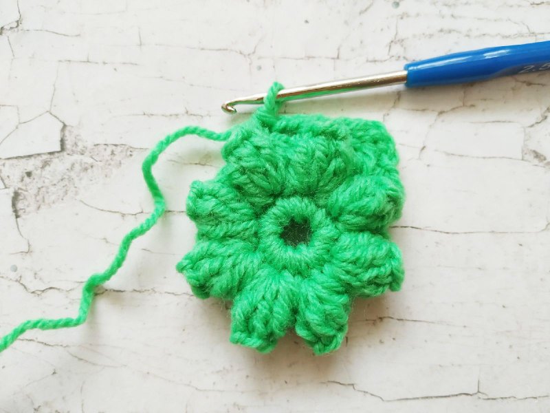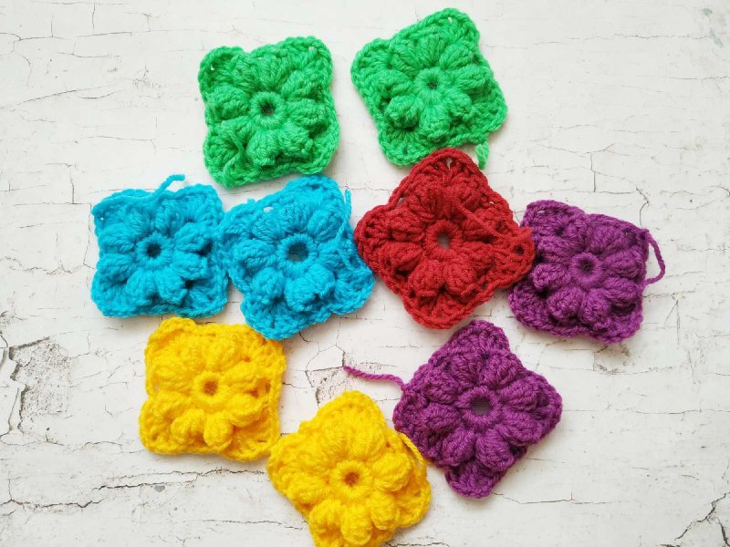 Вяжем необходимое количество таких цветочных мотивов. Один можно сделать совершенно другим цветом. Его потом пришьем по центру.