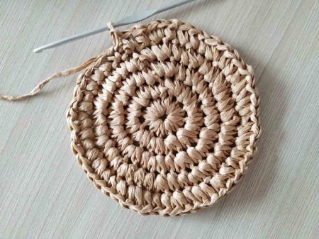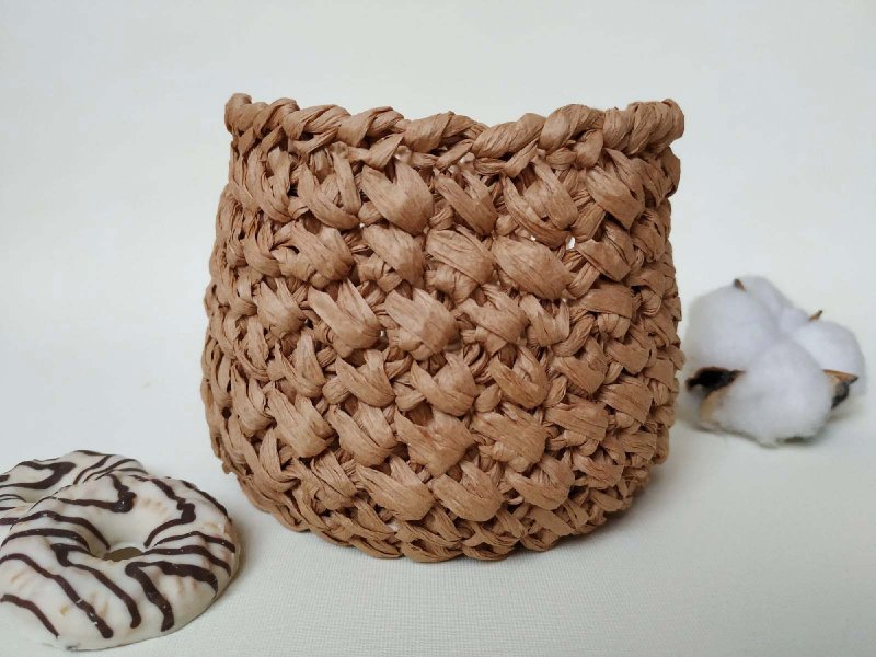 Такая корзинка вяжется очень просто. Нить Raffia предлагает большой цветовой ассортимент. Для корзинки можно взять любой. Эта нить бывает разной жесткости. Чем она более жесткая, тем лучше корзинка держит форму. Но вязать из жесткой нити трудновато. Можно использовать более мягкую нить и просто на дно корзинки положить картонный круг. Крючок подбираем тот, которым удобно вязать. В данном случае это крючок 3 мм.