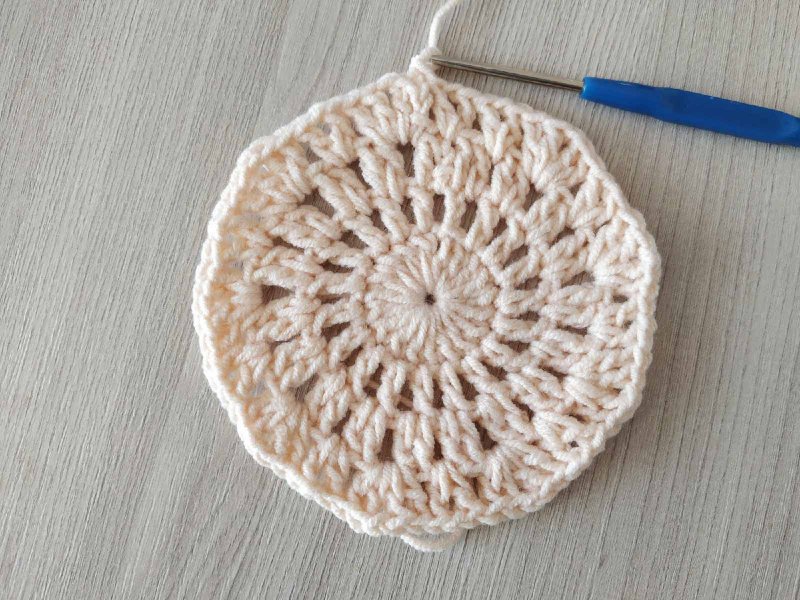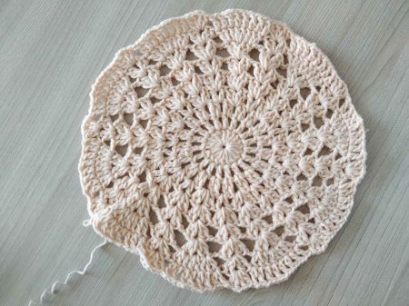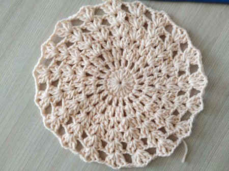 4 ряд – вяжем под арки 2 ссн, 1 вп, 2 ссн. По кругу вяжем одинаковый элемент.