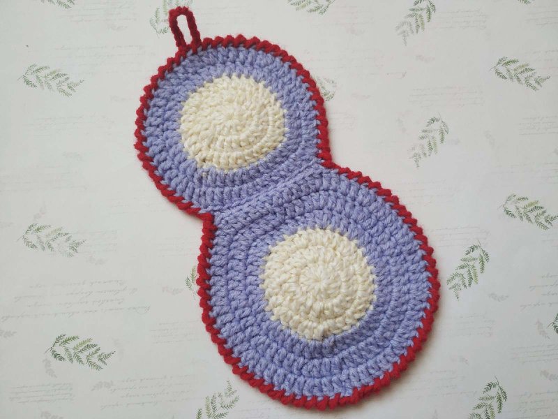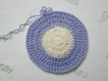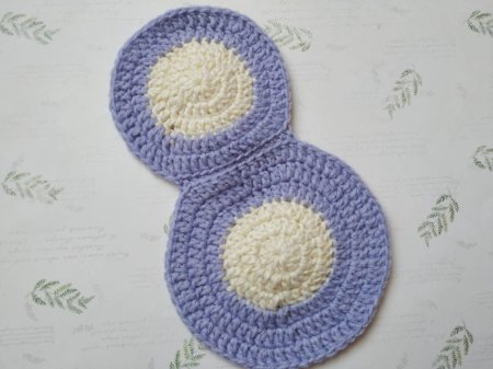 Это верхний круг восьмерки. Нижний вяжем почти точно так же. Вяжем еще 1 такую же деталь, а затем добавляем еще 1 ряд с прибавками. Прибавляем в каждую 5 петлю ряда.