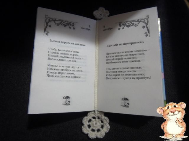 Вязаная закладка для книг с цветами