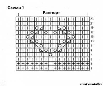 Плотность вязания: 2 петли х 40 рядов = 10 х 10 см.