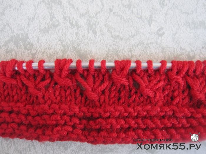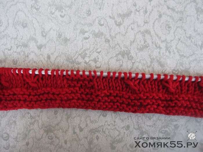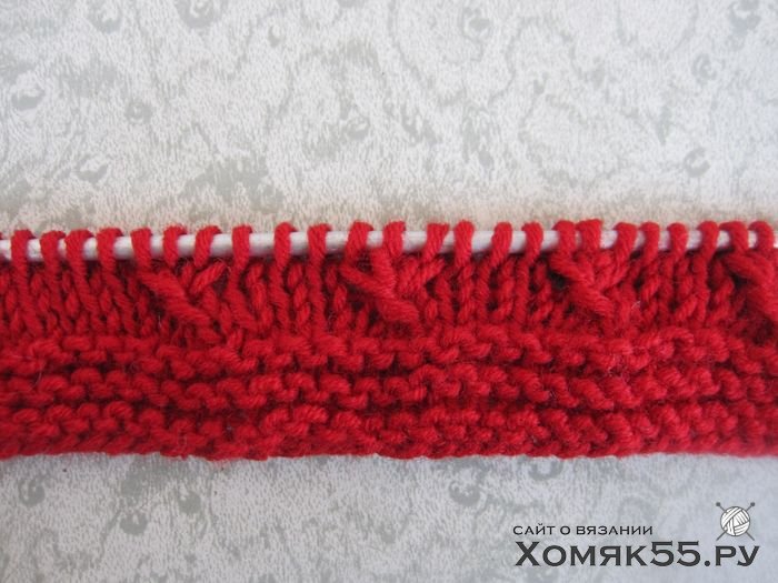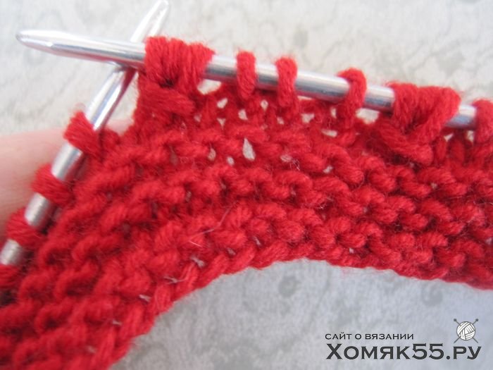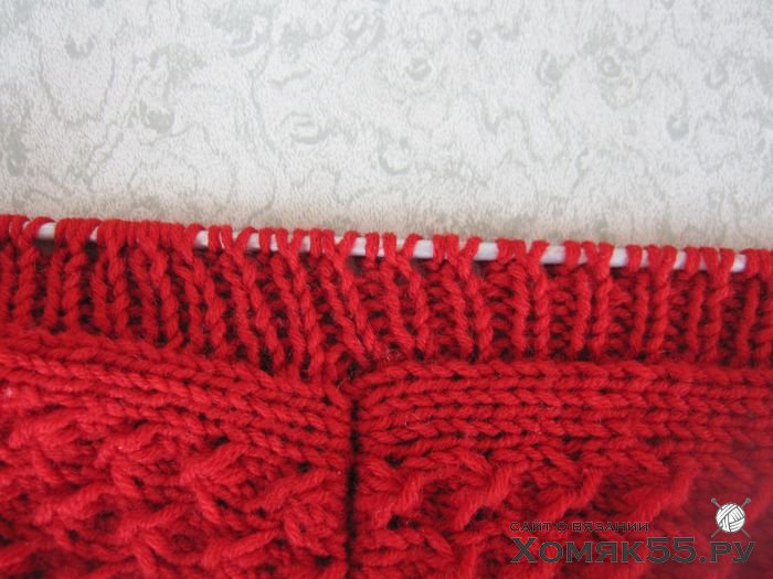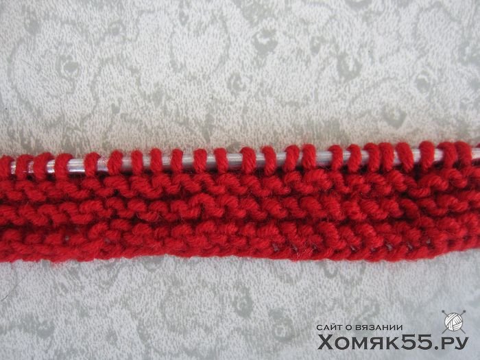 Провязать 6 рядов платочной вязкой, т. е. Лиц. п. и в лиц., и в изн. рядах.