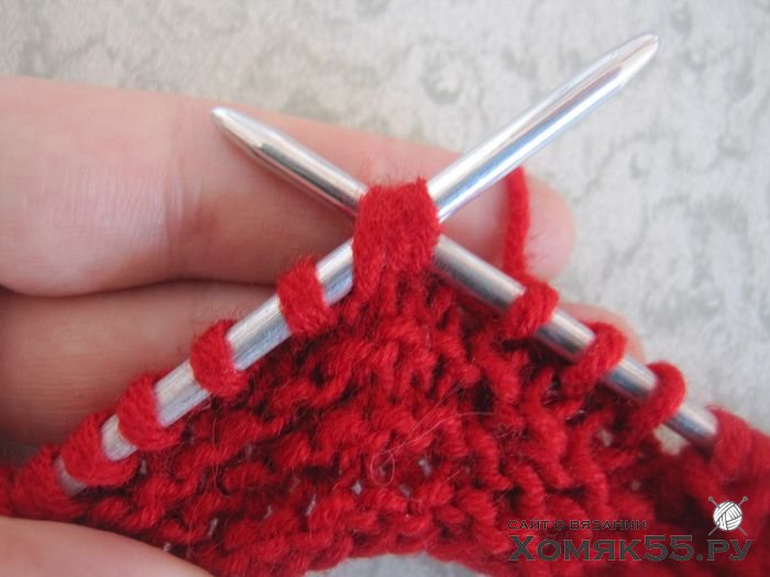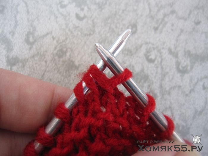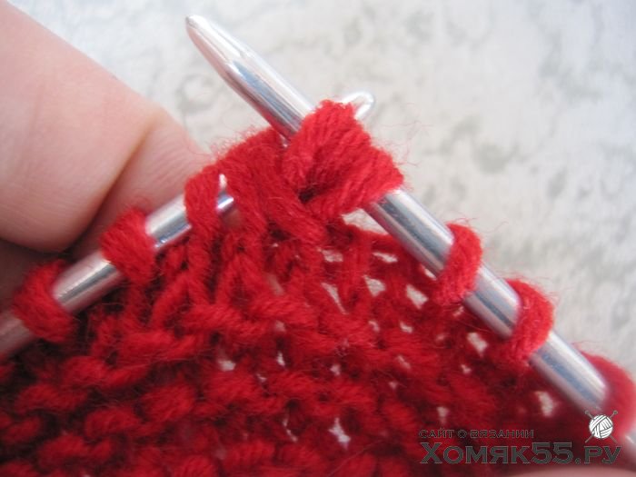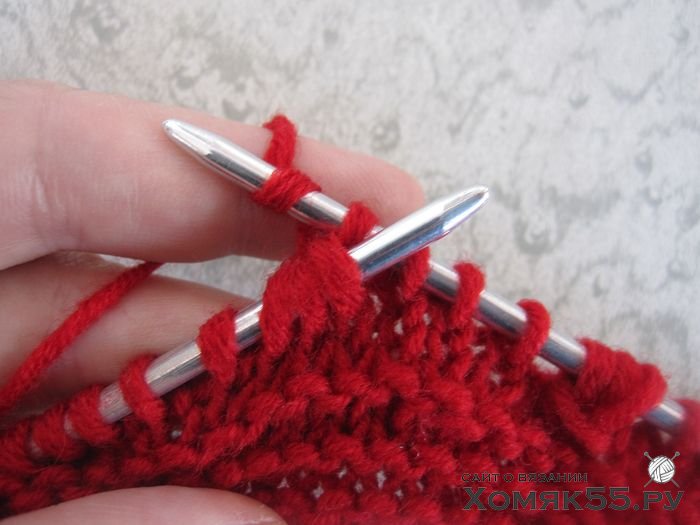 не снимая их с левой спицы провязать 1 лиц.,
