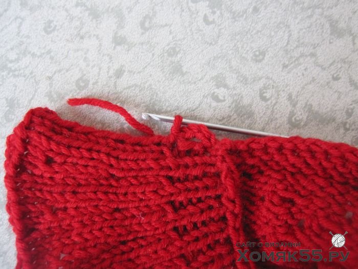 С одной стороны горловины крючком выполнить петлю. Для этого провязать 3 ВП, 1 СБН и закрепить нить.