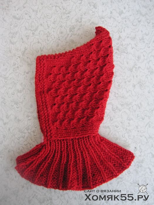 Вязание выполняется от лба к макушке. На спицы набрать 65 п.