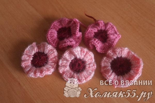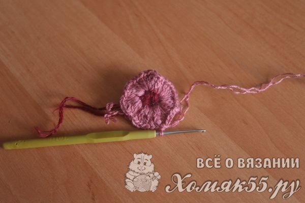 Чем плотнее вы будете делать проколы в серединке, тем пушистее получится цветок. Я в каждую петлю нижнего ряда делала 5-6 столбиков.
