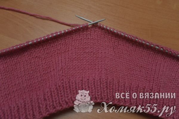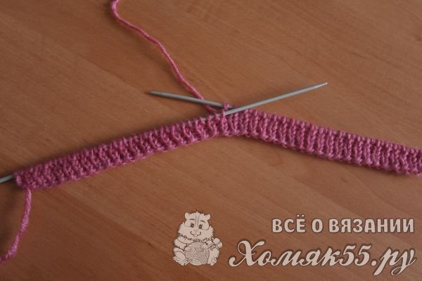 Два сантиметра провязываем резинкой 1х1, чередуя в узоре лицевые и изнаночные петли.