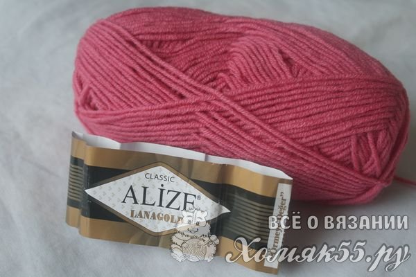 Пряжу лучше брать полушерстяную. Она теплая, приятная к телу, не деформируется при стирке. Пряжа Лана Голд соответствует всем этим требованиям. Я использовала пряжу с толщиной нитки 240 метров на 100 граммов. Это оптимальная толщина нити, изделие получается в меру плотным, и вязать можно всего в одно сложение нити, что существенно экономит пряжу.